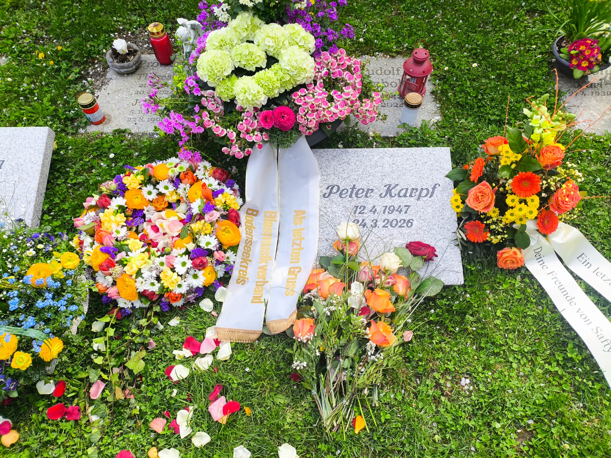 Mit dem Lied vom “Guten Kameraden” und mehreren Chorälen hat sich unser Kreisseniorenorchester unter der Leitung von Rainer Geister von Ehrenpräsident Peter Karpf auf dem Friedhof in Fischbach verabschiedet. Am 24. März 2026 ist er im Alter von 78 Jahren verstorben. In einem Nachruf würdigte Präsident Manfred Ehrle die Verdienste von Peter Karpf um die Blasmusik. Über 18 Jahre führte er den Blasmusikverband Bodenseekreis als dessen Präsident und war bereits schon zuvor als fleißiger und engegierter Kassier tätig. “Humorvoll, aufrecht und gradlienig” bezeichnete ihn Manfred Ehrle in all seinem Wirken und Tun. Peter Karpf war Mitgründer der Kreisseniorenkapelle und selbst aktiver Tenorhornist. Unser Blasmusikverband ist Peter zu großem Dank verpflichtet und wird ihn in immerwährender Erinnerung bewahren.
