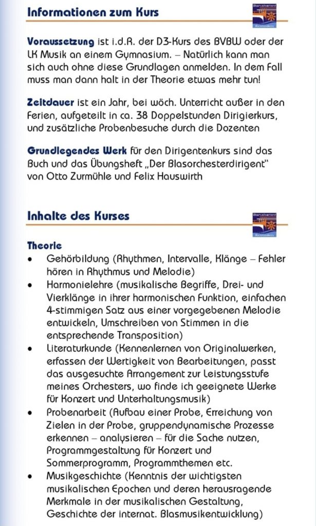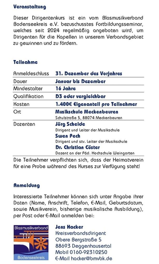 Dirigentenkurs 2026 im Bodenseekreis