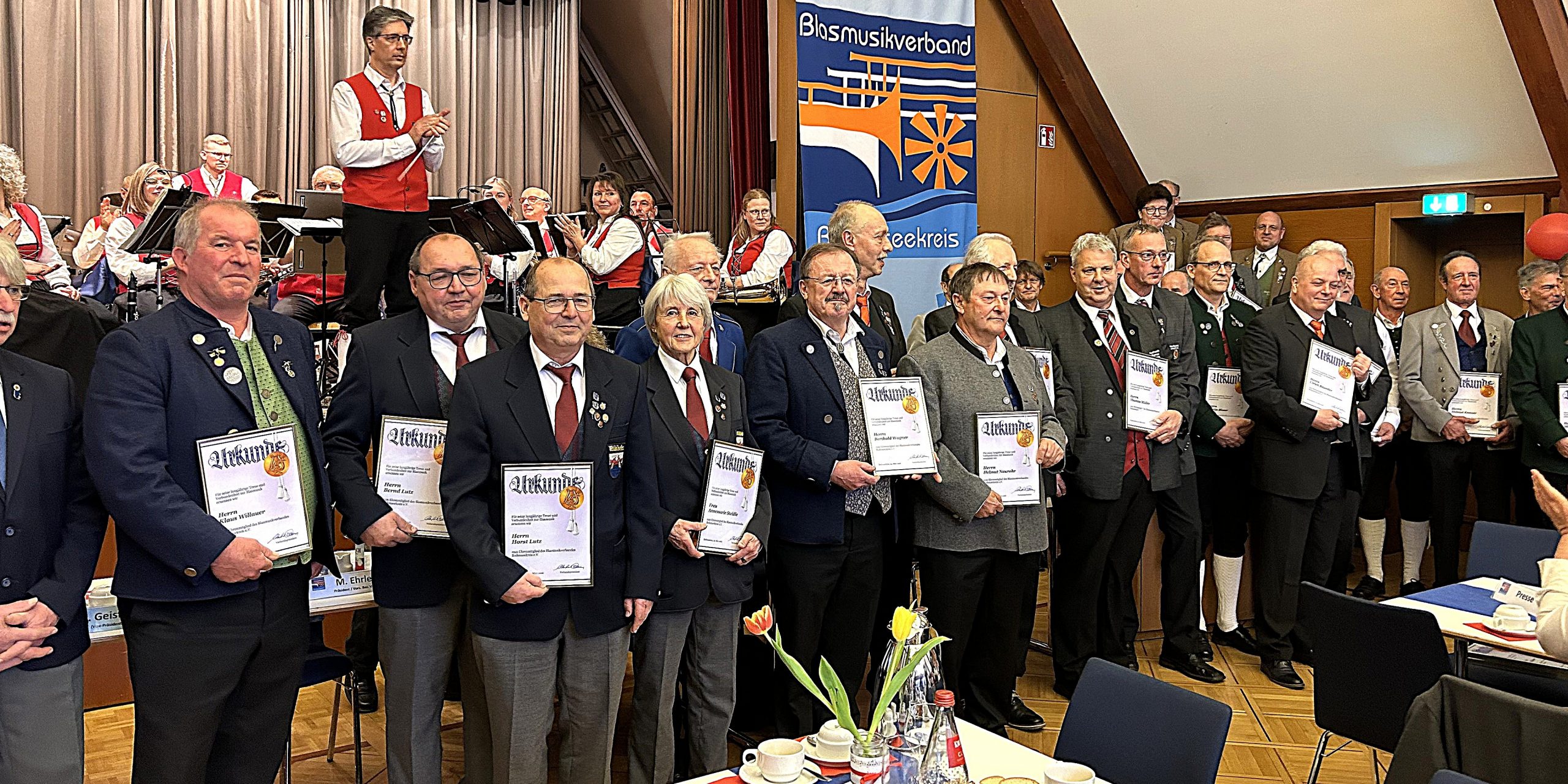 Heike Knorr – Stk Markdorf | Andreas Beck – Stk Markdorf | Christoph Amann – Kreisseniorenorchester | Martin Blaser und Michael Ziegler – MV Weildorf | Guido Hildebrand – StO Friedrichshafen | Zhomas Moser – MV Ahausen | Arno Wamsler – MV Tannau | Birgit Eberhard, Wolfgang Schuler, Karlheinz Schuldes, Markus Maier und Gerold Eberhard- MV Kehlen | Ernst-Werner Meschenmoser, Hubert Kretzer und Helmut Kretzer – MV Beuren | Ronny A. Knepple – MV Harmonie Lippertsreute | Matthias Widenhorn, Michael Seiberle, Kurt-Georg Sanktjohanser, Thomas Müller, Andreas Märte und Betram Keßler – MK Sipplingen | Richmar Henkel – BK Langenargen | Christoph Baumgartner, Thomas Jegler, Karl Jegler, und Anton Hämmerle – MV Roggenbeuren |  Christian Rothmund – MV Neufrach | Helmut Neurohr – MV Ailingen | Berthold Wagner – MV Meckenbeuren | Martin Müller, Wolfgang Beck und Ulrich Bäumler – SK Überlingen | Annemarie Steidle, Horst Lutz und Bernd lutz – Mv Mühlhofen | Peter Kopp – MV Oberteuringen | Joachim Steputat – MV Kressbronn | Klaus Willauer -MV Berg